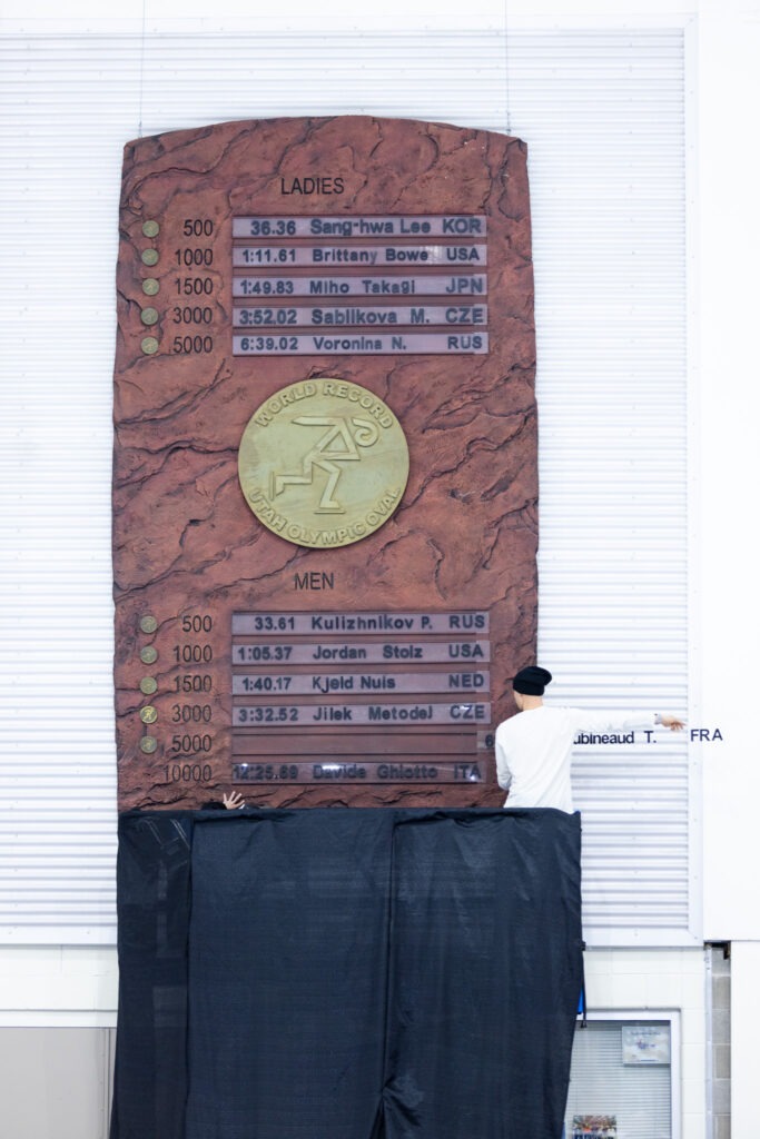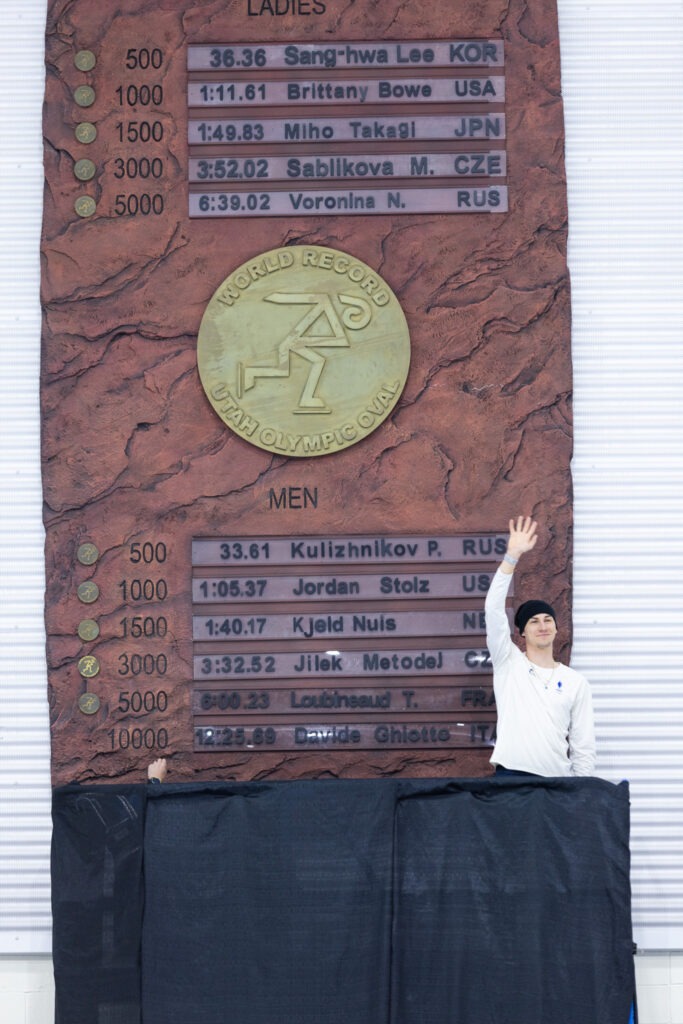 Cette deuxième journée avait également une saveur particulière pour Timothy Loubineaud. Le Français a été honoré lors de la Cérémonie du Mur des Records de Salt Lake City, un moment symbolique où il a apposé sa plaque officielle sur le légendaire « Record Wall » de l’Utah Olympic Oval.